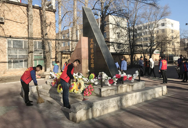 參加人員6:30到達(dá)王利偉紀(jì)念碑公園進(jìn)行了掃墓活動(dòng),公司團(tuán)委書(shū)記宋明林對(duì)英雄王利偉的光榮事跡進(jìn)行了介紹,全體人員集體鞠躬悼念英雄?;顒?dòng)最后公司人員對(duì)整個(gè)公園的衛(wèi)生進(jìn)行了清掃。
